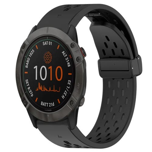 Correa de Reloj para Garmin Fenix 6X 26mm Silicona con Orificio y Hebilla Plegable (Negro)