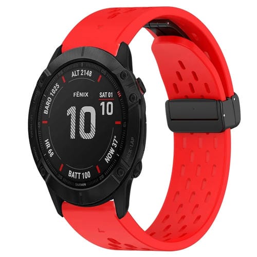 Correa de Reloj Silicona para Garmin Fenix 6X Sapphire 26mm con Orificio para Hebilla Plegable (Rojo)