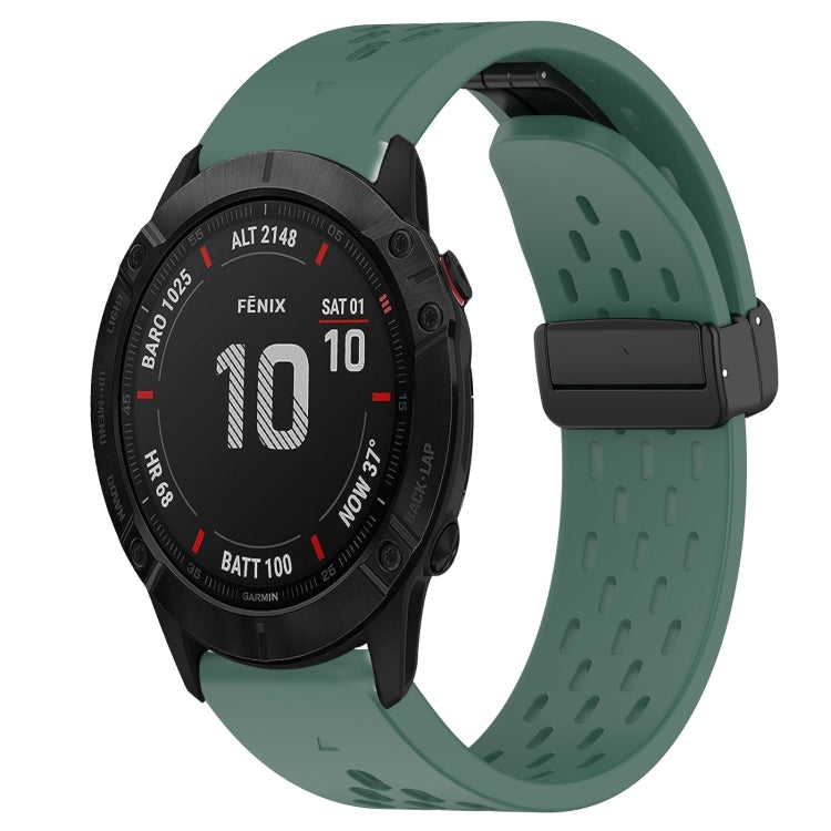Correa de Reloj Garmin Fenix 6X Sapphire 26mm Silicona con Orificio para Hebilla Plegable (Verde Oscuro)
