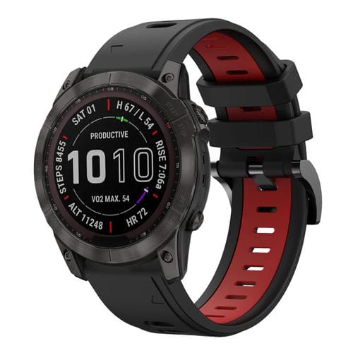 Banda de Reloj Silicona Deportiva para Garmin Fenix 7X Solar 26mm (Negro + Rojo)