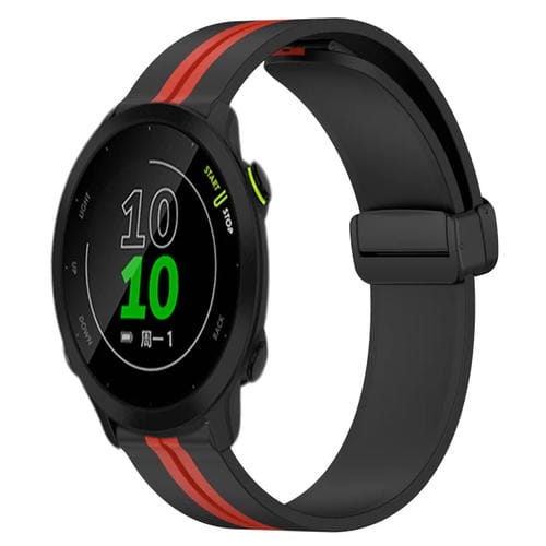 Correa de Reloj para Garmin Forerunner 158 20mm Silicona con Cierre Magnético Plegable (Negro + Rojo)
