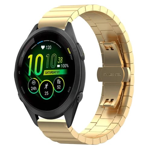 Correa de Reloj para Garmin Forerunner 265S Metal Acero Inoxidable Hebilla Mariposa (Dorado)