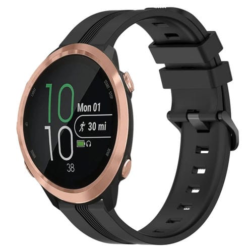 Banda de Reloj para Garmin Forerunner 645 Music 20mm Silicona Cóncava a Rayas (Negro)