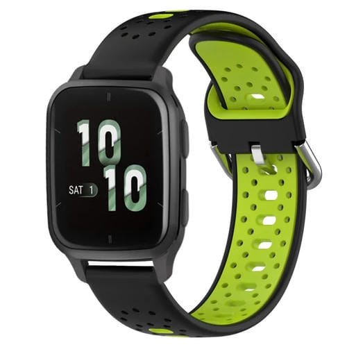Pour Garmin Forerunner Sq2 20 mm bracelet de montre en silicone respirant bicolore (noir + vert citron)