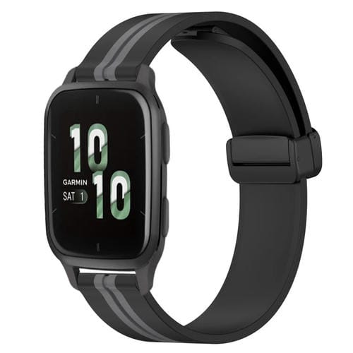 Correa de Reloj 20mm Garmin Forerunner Sq2 Silicona con Cierre Magnético Plegable (Negro + Gris)