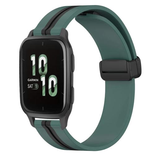 Correa de Reloj para Garmin Forerunner Sq2 20mm Silicona Cierre Magnético Plegable (Verde Oliva + Negro)