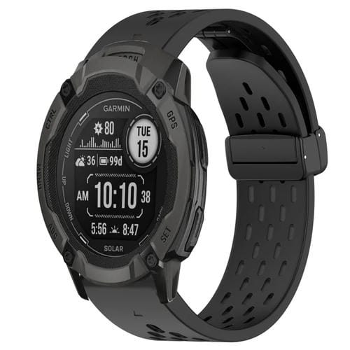 Correa de Silicona para Garmin Instinct 2X Solar 26mm con Orificio y Hebilla Plegable (Negro)