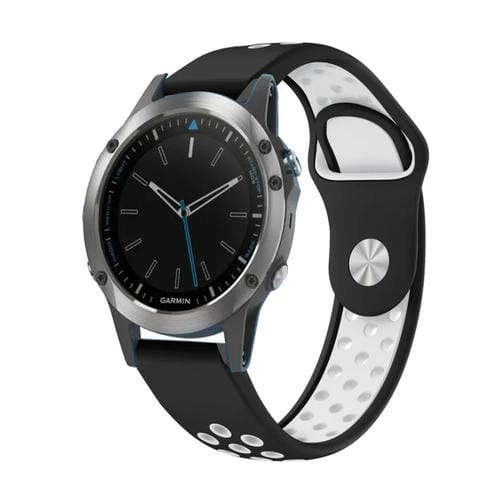Pour Garmin Quatix 5 Sapphire 22 mm Sports Bracelet de montre en silicone respirant (noir + blanc)