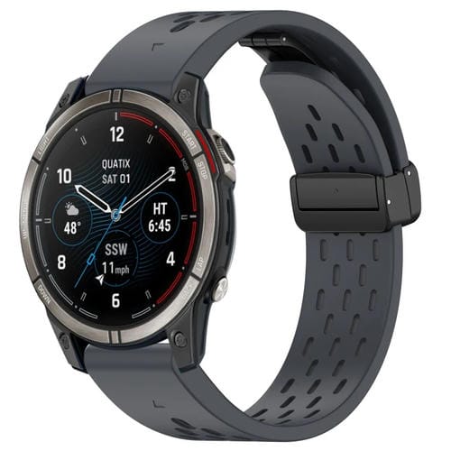 Correa de Silicona para Garmin Quatix 7 Pro con Hebilla Plegable Magnética y Orificios de 22mm (Gris Oscuro)