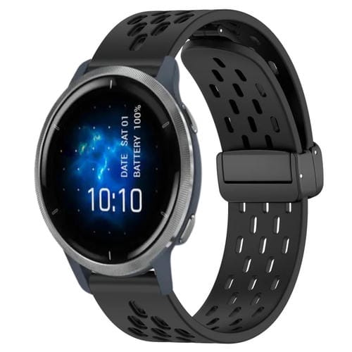 Correa de Silicona para Garmin Venu 2 con Cierre Magnético Plegable de 22mm (Negro)