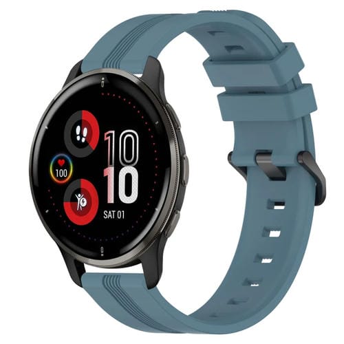 Banda de Reloj de Silicona para Garmin Venu 2 Plus 20mm con Rayas Cóncavas (Rock Cyan)