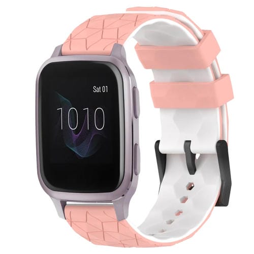 Banda de Reloj Garmin Venu Sq 20mm Silicona Dos Colores Patrón de Fútbol (Rosa + Blanco)