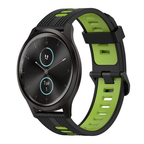 Banda de Reloj para Garmin Vivomove Patrón Vertical 20mm Silicona Dos Colores (Negro+Verde)
