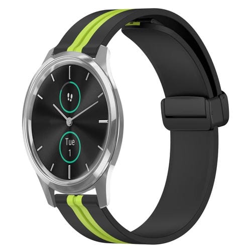 Correa de Silicona para Garminmove Luxe 20mm con Cierre Magnético Plegable (Negro + Verde Lima)