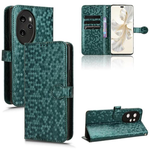Funda para Honor 100 Pro 5G de Cuero con Textura de Punto de Panal (Verde)