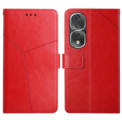 Funda de Cuero para Honor 80 Pro HT01 con Tapa y Patrón en Forma de Y (Rojo)