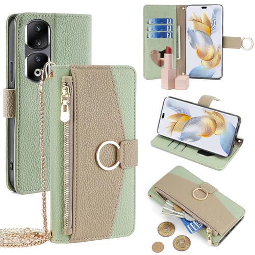 Funda de Cuero para Honor 90 Pro 5G Crossbody con Textura Litchi (Verde)