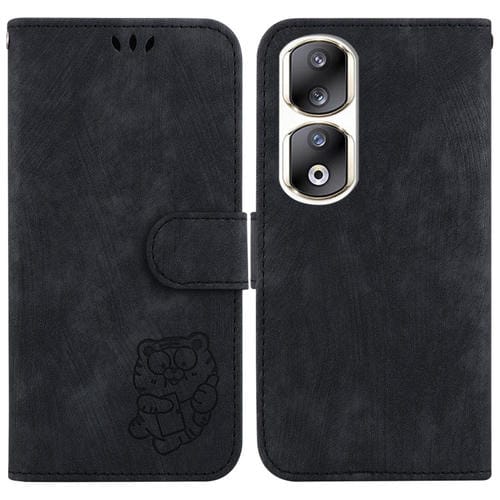 Funda de Cuero para Honor 90 Pro con Relieve Little Tiger (Negro)