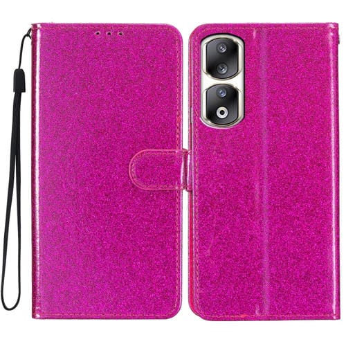 Funda de Cuero Glitter Powder Flip para Honor 90 Pro (Rojo Rosa)