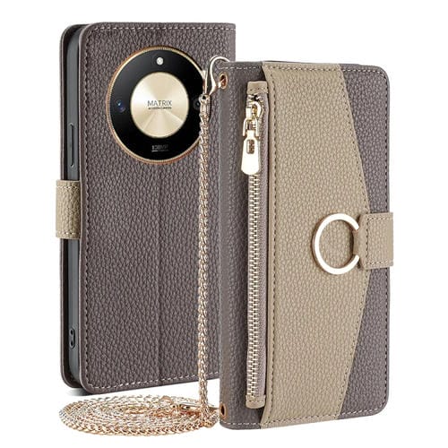 Funda para Honor X50 5G de Cuero con Textura Litchi Cruzada (Gris)