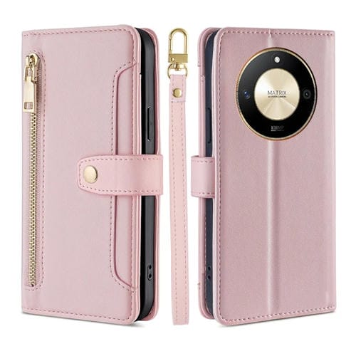 Funda de Cuero para Honor X50 5G Lite con Billetera, Cremallera y Textura de Oveja (Rosa)