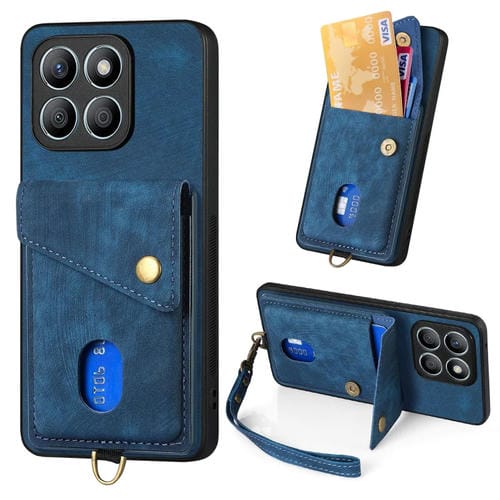 Funda para Honor X8B de Cuero Plegable con Billetera, Tarjeta y Correa (Azul)