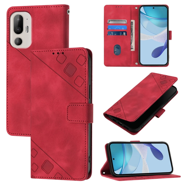 Funda de Cuero con Relieve para HTC U24 Pro Skin Feel (Rojo)