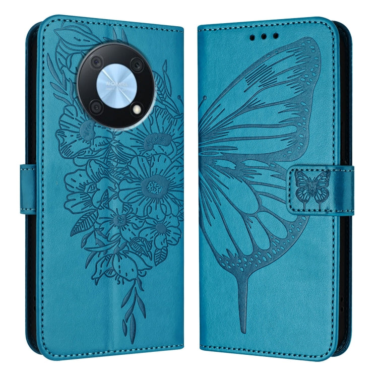 Funda de Cuero para Huawei Enjoy 50 Pro 4G / Nova Y90 con Mariposa en Relieve (Azul)