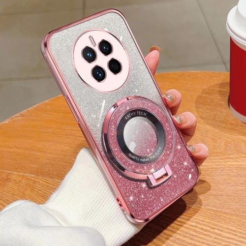 - 1x Funda para Huawei Mate 50 y Mate 50E TPU con Soporte Redondo y Brillo Degradado (Rosa)
