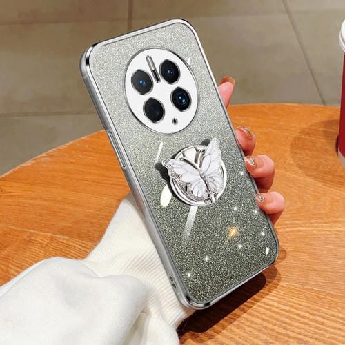 Funda para Huawei Mate 50 Pro de TPU con Soporte de Mariposa y Brillo Degradado (Plata)