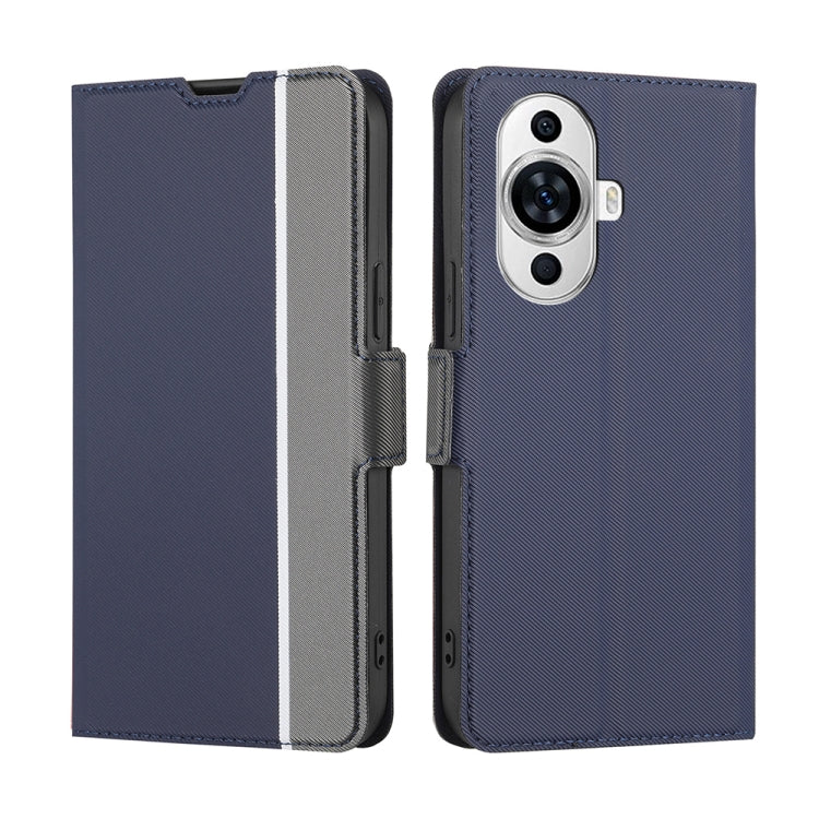 Funda para Huawei Nova 11 4G cuero con textura Twill y botones laterales (Azul)