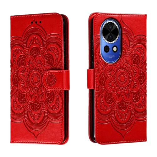 Funda de Cuero para Huawei Nova 12 con Patrón en Relieve Sun Mandala (Rojo)