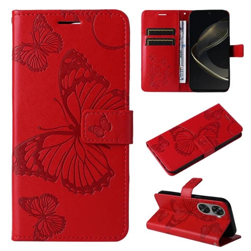 • 1x Funda para Huawei Nova 12 Se y Nova 11 Se de Cuero con Tapa y Patrón Mariposa 3D (Rojo)