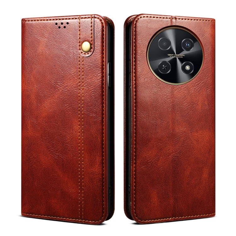Funda de Cuero Huawei Nova 12I 4G Oil Wax Crazy Horse Texture para Teléfono (Marrón)