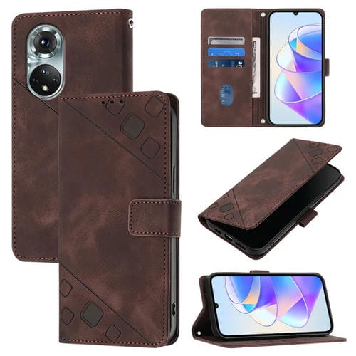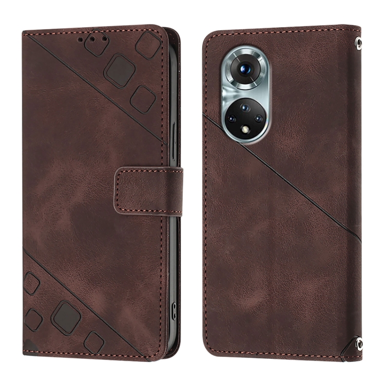 Funda de Cuero Skin Feel para Huawei Nova 9 Pro en Relieve (Marrón)