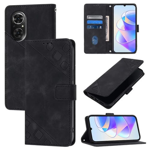 Funda de Cuero Skin Feel para Huawei Nova 9 Se en Relieve (Negro)