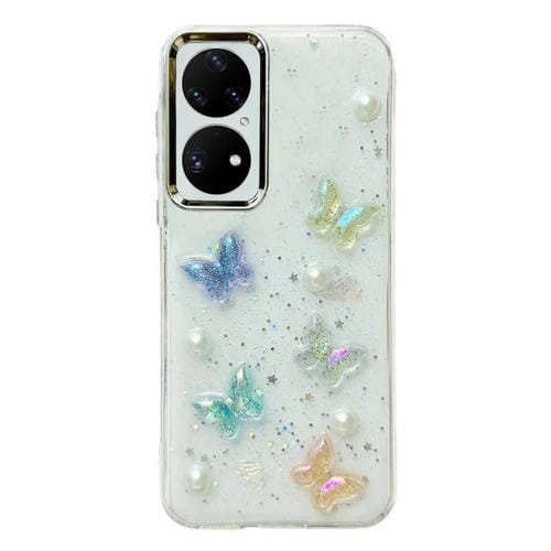 - 1x Caja de Teléfono TPU para Huawei P50 Pro 3D con Mariposa de Cristal Colorida (Mariposa Perla)