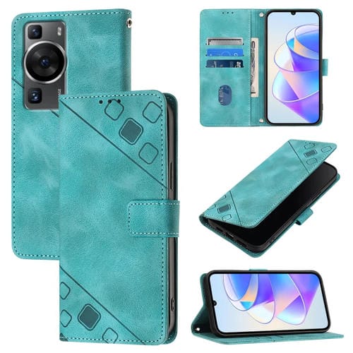 - 1x Funda de Cuero Skin Feel para Huawei P60 / P60 Pro en Relieve (Verde)