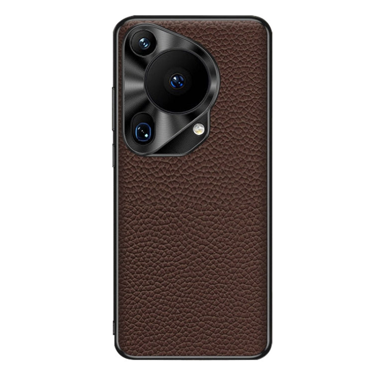 Funda para Huawei Pura 70 con Textura Litchi de Cuero Ultra Genuino (Café)