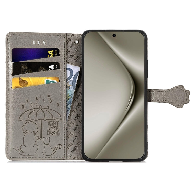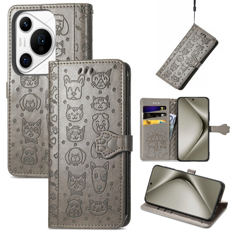 Funda para Huawei Pura 70 Ultra de Cuero con Relieve de Perro y Gato (Gris)