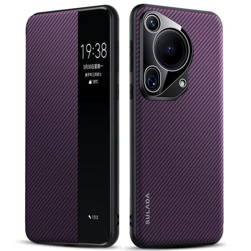 Funda de Cuero Huawei Pura 70 Ultra Sulada Kevlar 600D con Ventana Inteligente (Púrpura)