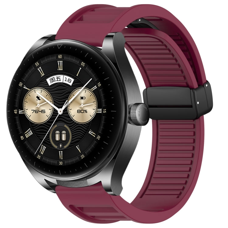 Correa de Reloj de Silicona para Huawei Watch Buds 22mm con Hebilla Magnética Plegable (Rojo Vino)