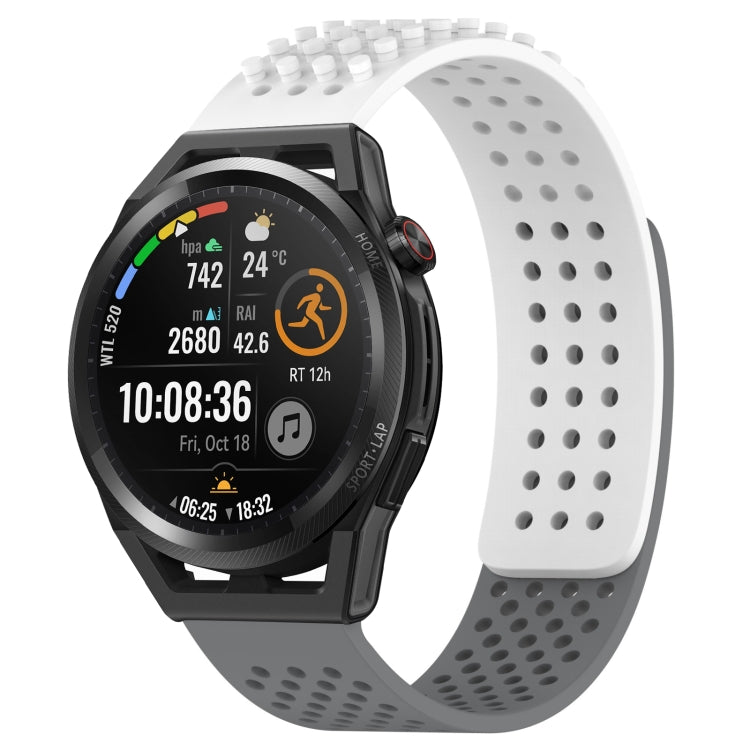 Correa de Silicona para Huawei Watch GT Runner 22mm con Puntos 3D Transpirables (Blanco + Gris)