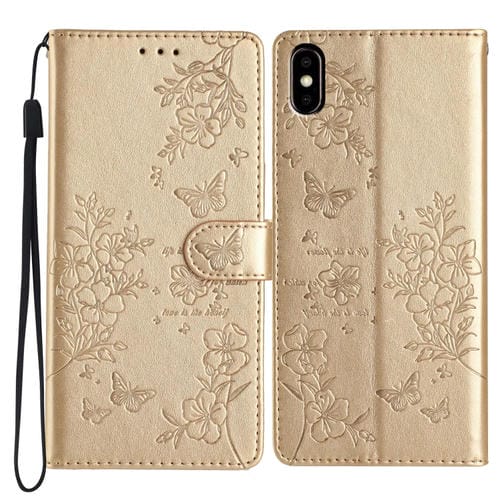 • 1x Funda para Huawei Y5 2019 de Cuero con Relieve Flor de Amor y Mariposa (Dorado)