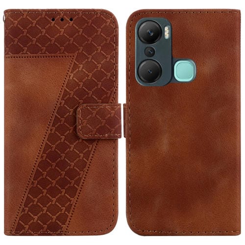 Funda de Cuero En Relieve en Forma de 7 para Infinix Hot 12 Pro (Marrón)