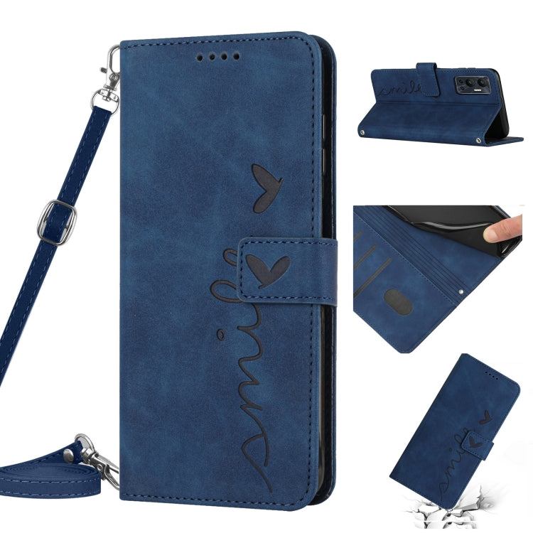 Funda de Cuero para Infinix Hot 12 con Cordón y Diseño Heart Pattern (Azul)