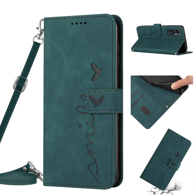 Funda de Cuero para Infinix Hot 12 Skin Feel con Patrón de Corazón y Cordón (Verde)