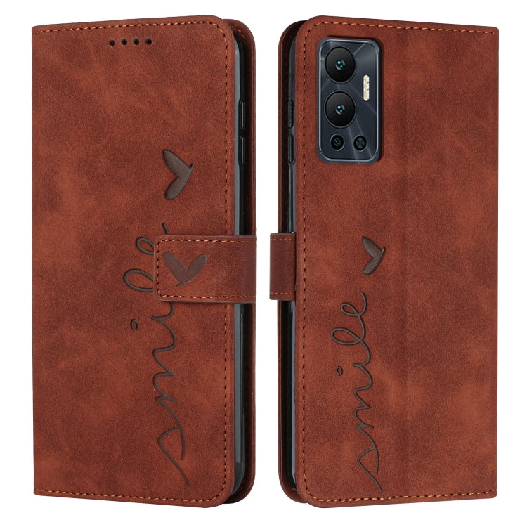 Funda de Cuero para Infinix Hot 12 Skin Feel con Patrón de Corazón (Marrón)