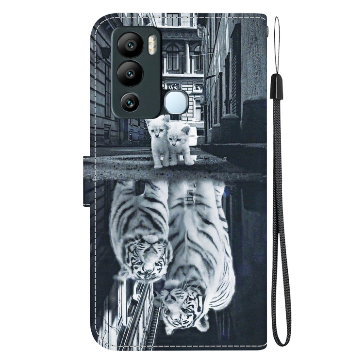 Funda de Cuero para Infinix Hot 12I con Dibujo Coloreado y Textura de Cristal (Reflejo de Tigre Gato)