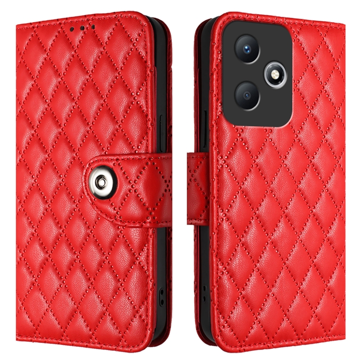 Funda para Infinix Hot 30 Play / 30 Play Nfc con Tapa, Textura Romboidal y Cordón (Rojo)
